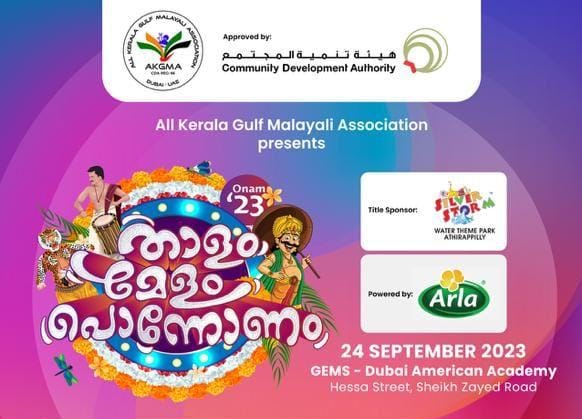 പ്രമുഖ പ്രവാസി മലയാളി സംഘടനയായ ഓൾ കേരള ഗൾഫ് മലയാളി അസോസിയേഷൻ -അഗ്മ യുടെ ഓണാഘോഷപരിപാടി ‘താളം മേളം പൊന്നോണം’ സെപ്റ്റംബർ 24 ന് ജെംസ് ദുബായ് അമേരിക്കൻ അക്കാഡമി സ്കൂളിൽ വെച്ച് നടത്തും. രാവിലെ ഏഴ് മണിക്ക് അത്തപ്പൂക്കളമിടൽ മത്സരം ആരംഭിക്കും. ആഘോഷപരിപാടികളിൽ വർണ്ണശബളമായ ഘോഷയാത്രയും ഒരുക്കിയിട്ടുണ്ട്. പായസമത്സരവും, വിഭവ സമൃദ്ധമായ സദ്യയുമുണ്ടായിരിക്കും. തുടർന്ന് അംഗങ്ങളുടെ വിവിധ കലാപരിപാടികൾ.